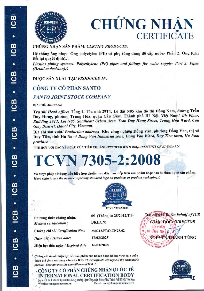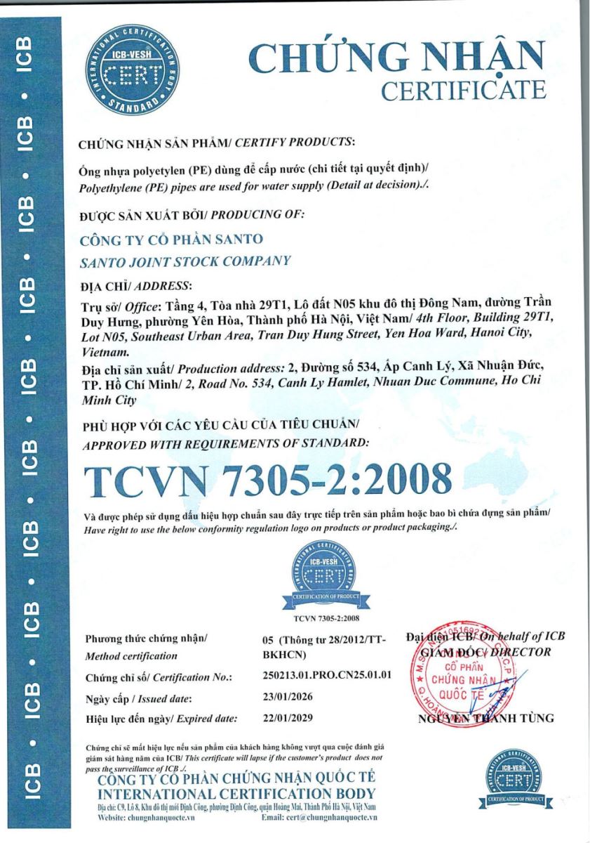 Chứng nhận TCVN 7305-2:2008 Tin tức liên quan Chứng nhận TCVN 8699:2011 12/03/2026 Chứng nhận TCVN 8699:2011 PVC-U 11/09/2025 Chứng nhận TCVN ISO 9001:2015 11/09/2025 Chứng nhận TCVN ISO 14001:2015 11/09/2025 KS C 8455: 2005 & TCVN 7997: 2009 11/09/2025