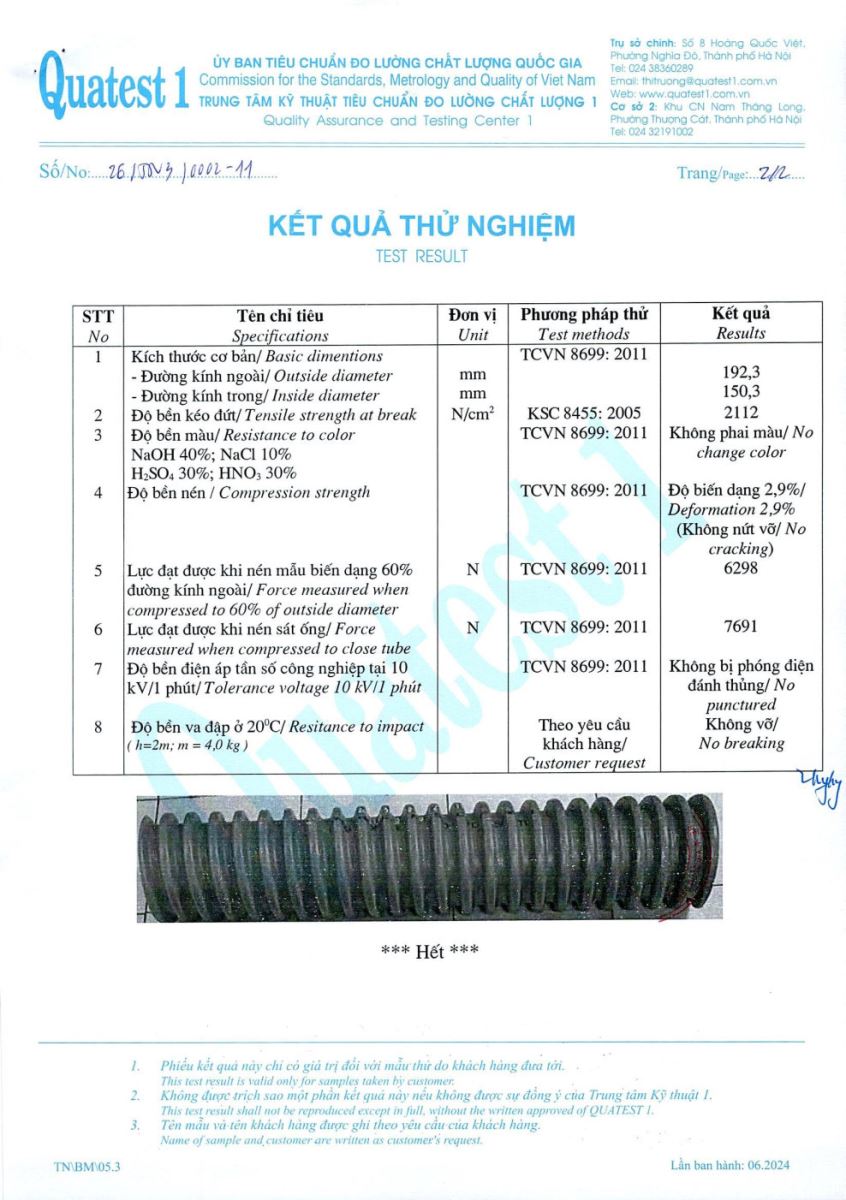 Ống nhựa được sản xuất trên dây chuyền hiện đại của Hàn Quốc theo tiêu chuẩn KSC 8455 (Korean Standard) của Hàn Quốc phù hợp với tiêu chuẩn lắp đặt điện ngầm TCVN 7997-2009