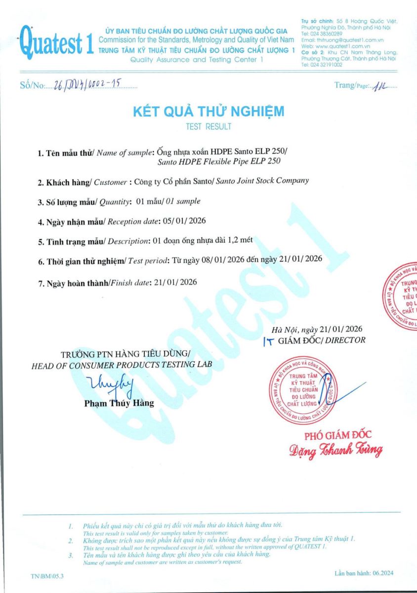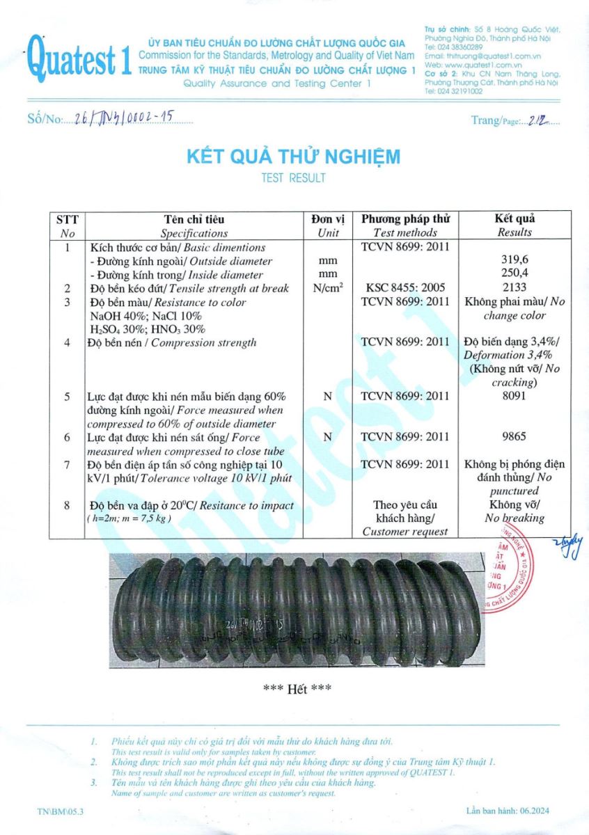 Ống nhựa được sản xuất trên dây chuyền hiện đại của Hàn Quốc theo tiêu chuẩn KSC 8455 (Korean Standard) của Hàn Quốc phù hợp với tiêu chuẩn lắp đặt điện ngầm TCVN 7997-2009