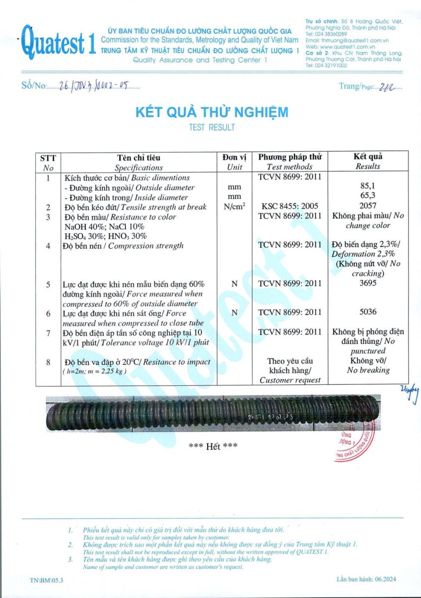 Ống nhựa được sản xuất trên dây chuyền hiện đại của Hàn Quốc theo tiêu chuẩn KSC 8455 (Korean Standard) của Hàn Quốc phù hợp với tiêu chuẩn lắp đặt điện ngầm TCVN 7997-2009